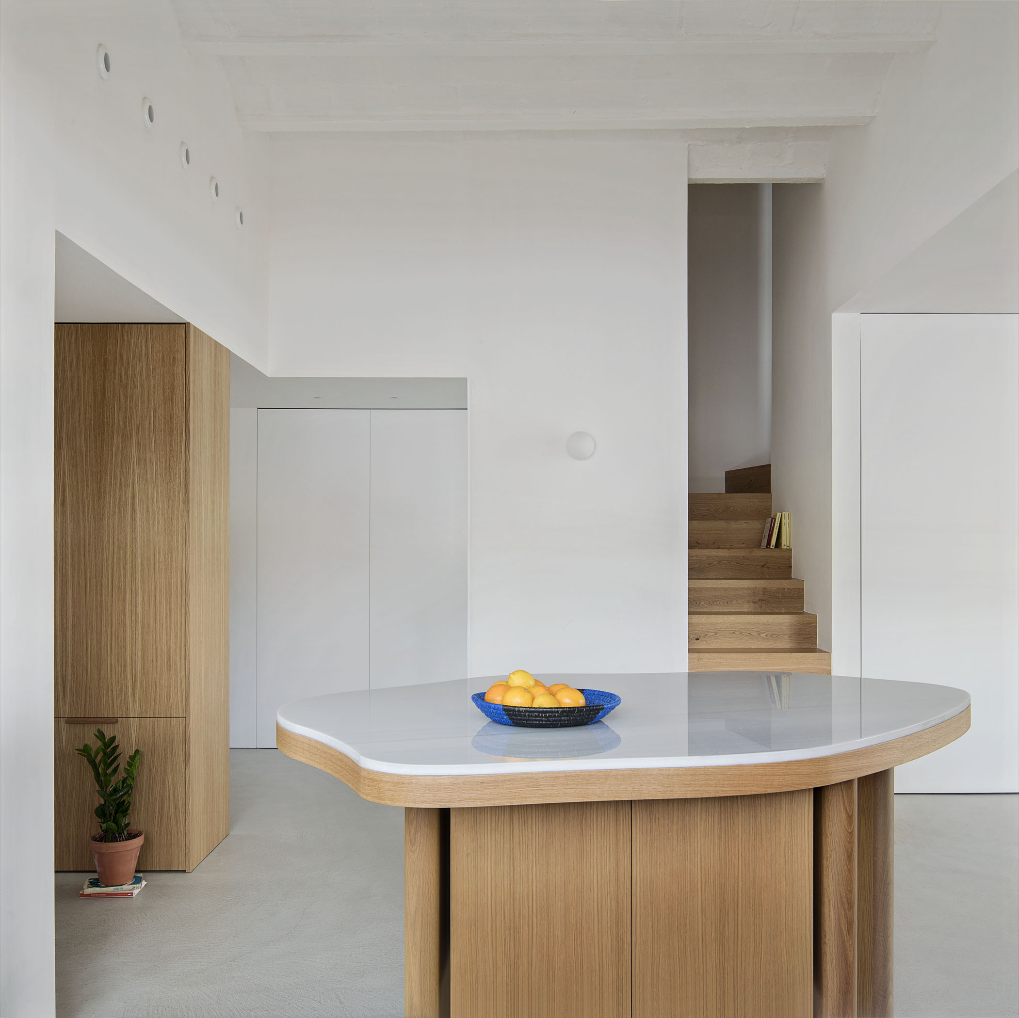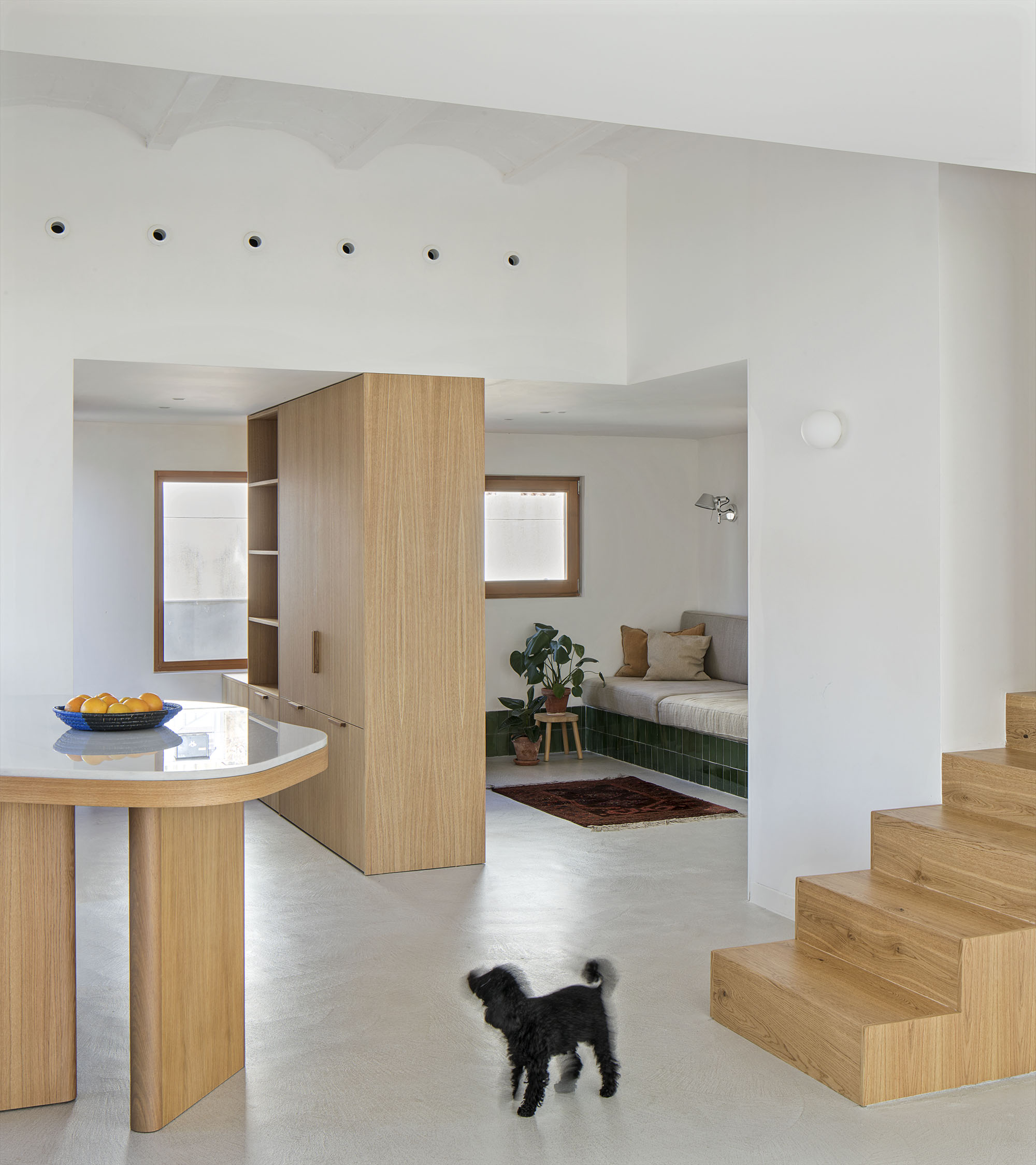 A nivell de distribució, l'estat original compta amb espais molt compartimentats i de dimensions poc convenients en relació amb l'ús que tenen. A més, aquest excés de compartimentació fa que aquestes estades no comptin amb una il·luminació i una ventilació adequada. El projecte persegueix generar espais que aprofitin la llum i la ventilació natural i que permetin usos diversos i flexibles. Tot això mantenint les traces d'allò que existia abans de la intervenció.