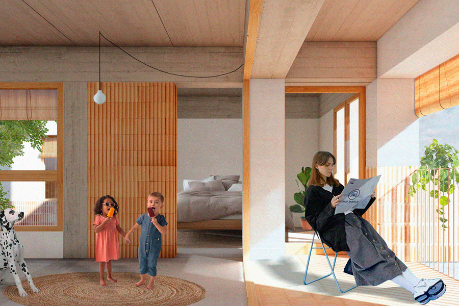 L´edifici d´habitatges és complex i versàtil. La seva planta baixa allotja una gran diversitat d'usos mentre s'ofereix una gran varietat tipològica d'habitatges, tots amb unes condicions de confort excepcionals, gràcies a la col·locació d'un atri que suposa la principal estratègia passiva de control climàtic. L'atri modera les condicions tèrmiques i higromètriques de l'edifici, mantenint unes condicions climàtiques idònies durant tot l'any.